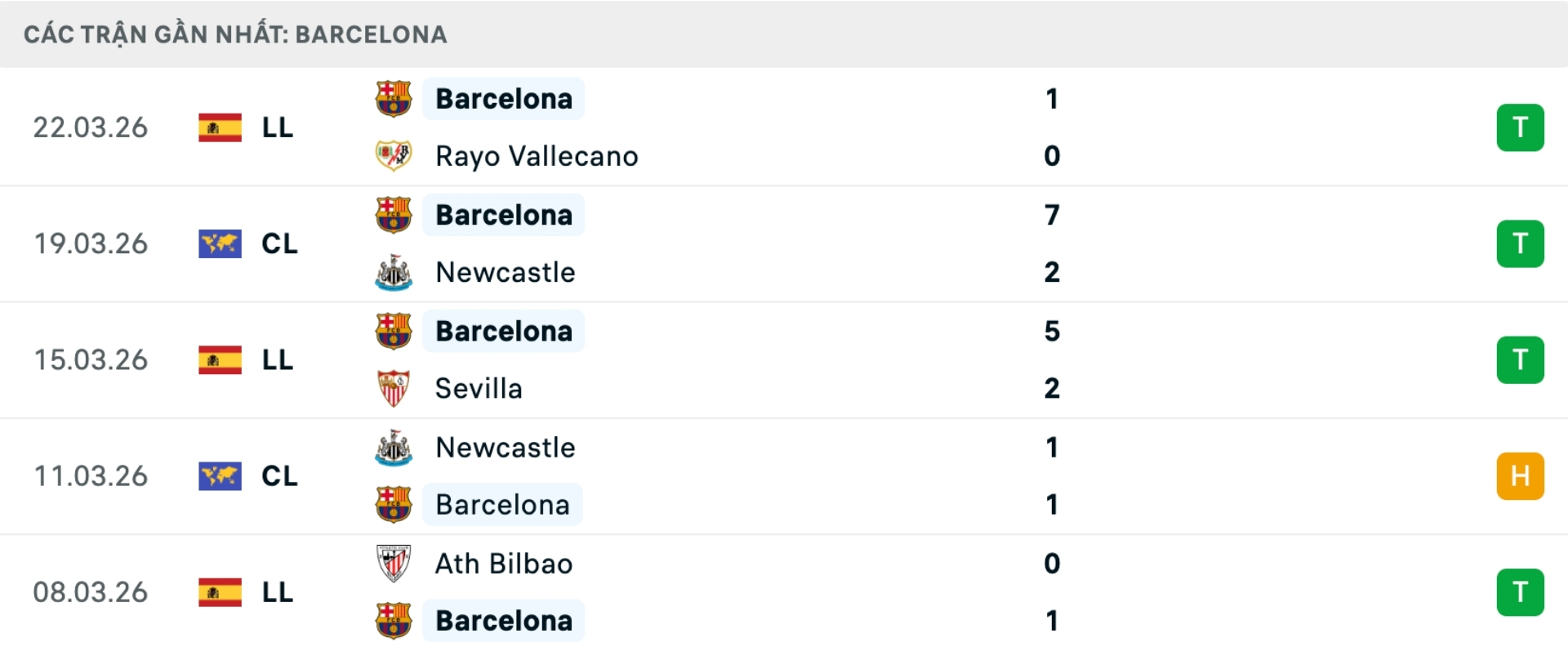 Phong độ Barcelona gần đây