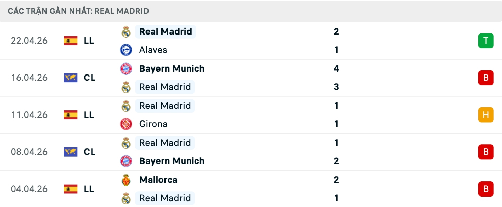Phong độ Real Madrid gần đây