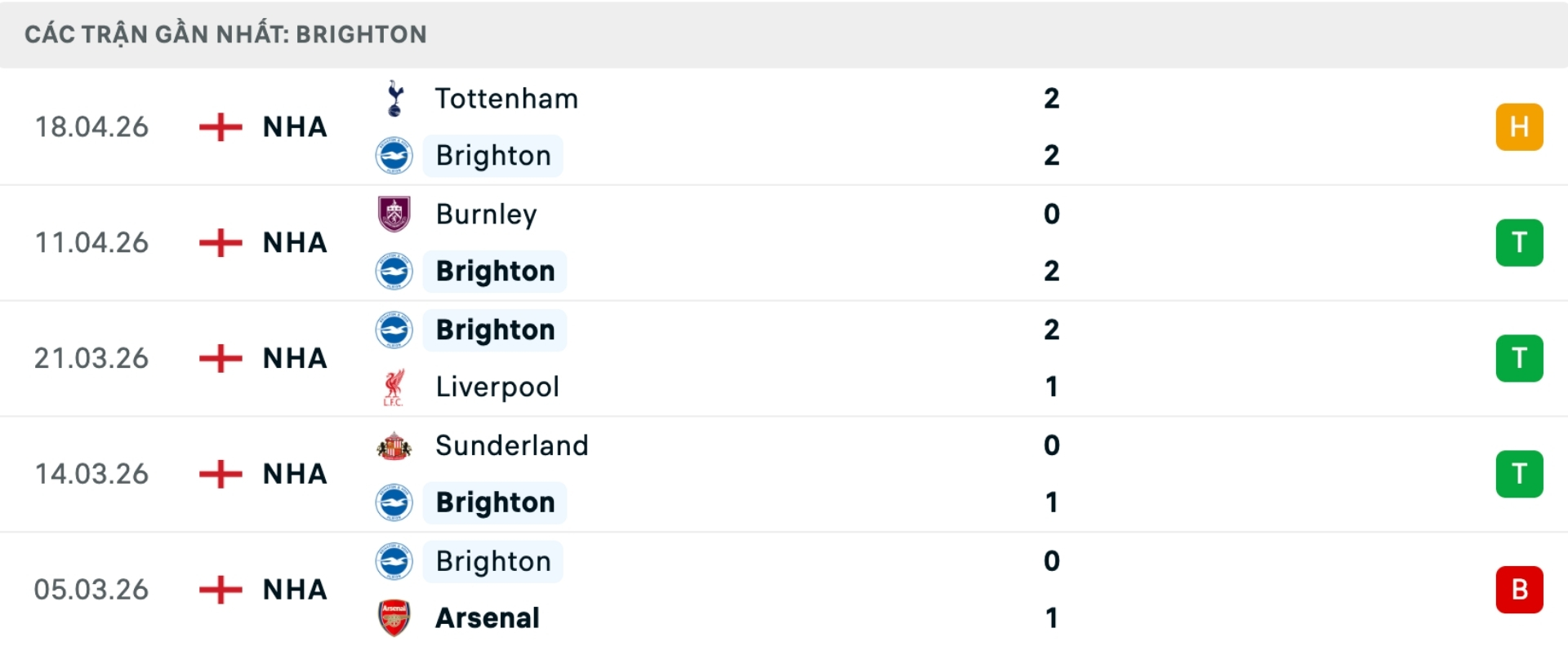 Phong độ gần đây của Brighton tuy chưa quá bùng nổ nhưng vẫn cho thấy sự ổn định cần thiết. Ở vòng đấu gần nhất, thầy trò HLV Fabian Hurzeler giành lại 1 điểm quý giá trên sân Tottenham sau trận hòa 2-2 đầy nỗ lực. Tinh thần thi đấu kiên cường cùng khả năng phản ứng tốt trong thời điểm khó khăn đang là điểm tựa lớn của đội bóng này. Đáng chú ý, Brighton còn đón nhận thêm tín hiệu tích cực về lực lượng khi Kaoru Mitoma sẵn sàng trở lại, còn Lewis Dunk cũng tái xuất sau án treo giò.