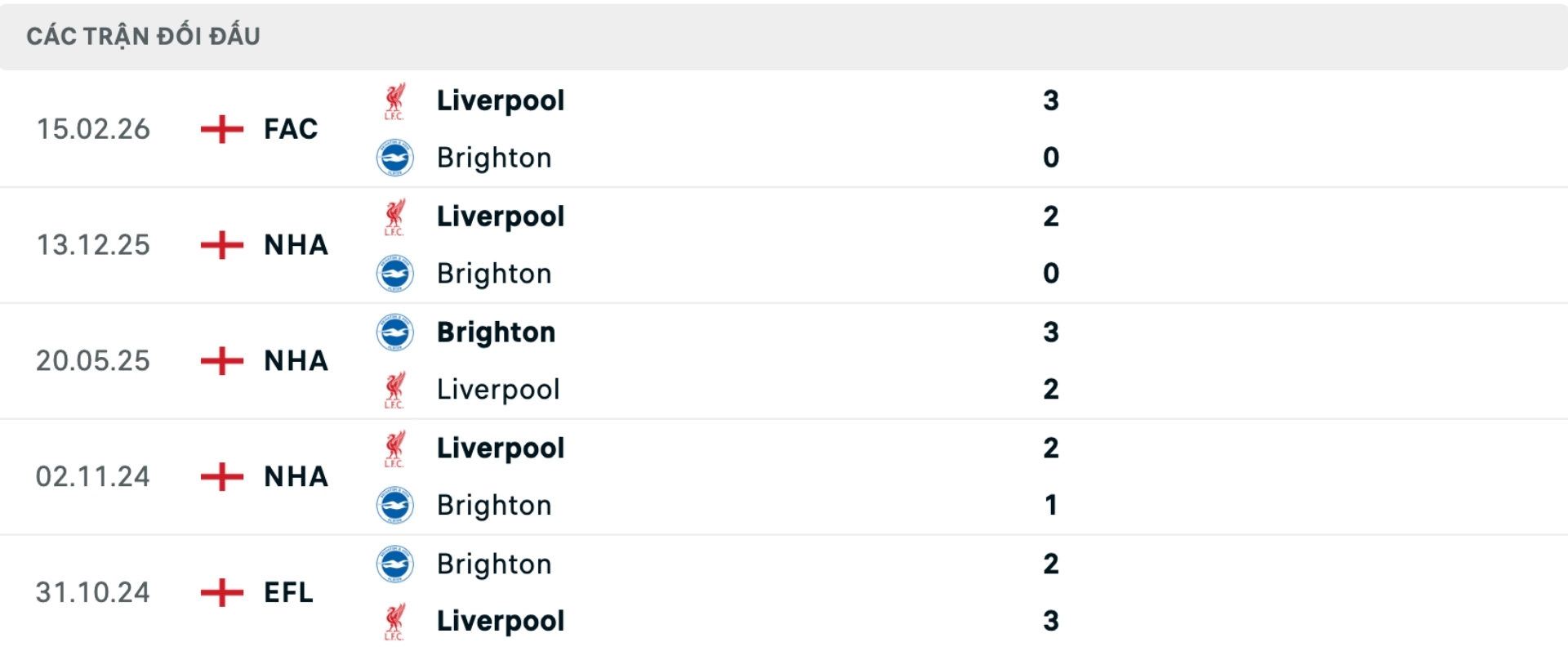 Dù Liverpool vẫn được đánh giá cao hơn về lực lượng, nhưng với phong độ thiếu ổn định cùng áp lực sân khách, khả năng họ đánh bại Brighton là không cao. Một kết quả hòa là kịch bản dễ xảy ra.