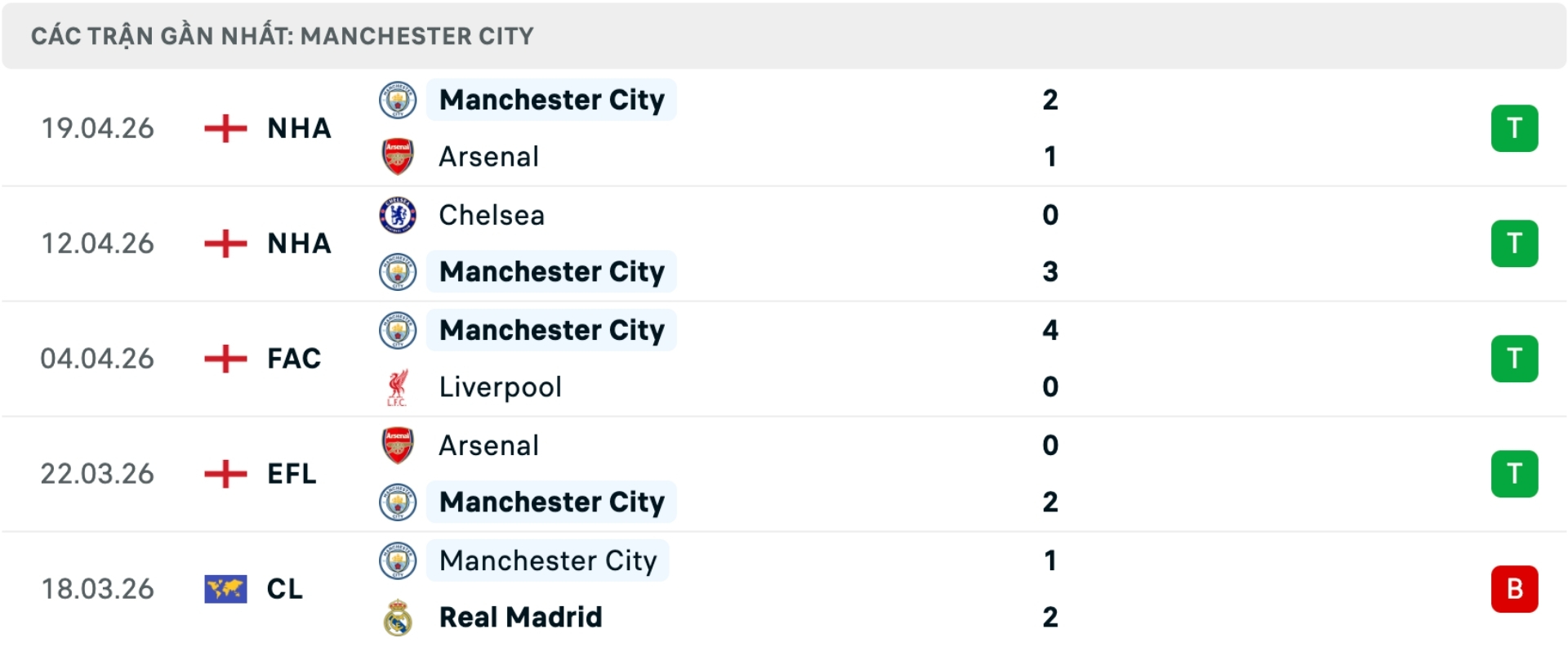Xét về phong độ, Man City rõ ràng đang vượt trội hoàn toàn. Đoàn quân của Pep Guardiola thắng liên tiếp 4 trận gần nhất, và đáng chú ý là cả 4 trận đó họ đều mang lại niềm vui cho giới đầu tư. Không chỉ hiệu quả trong lối chơi, Man City còn cho thấy sự ổn định rất cao ở giai đoạn then chốt của mùa giải.