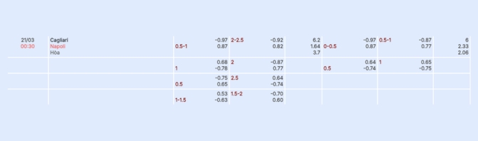 Cagliari không phải lựa chọn đáng tin khi chỉ thắng kèo 2/6 trận gần nhất. Trong khi đó, Napoli dù không quá ổn định nhưng lại cho thấy khả năng vượt kèo khá tốt trên sân khách với 2/3 trận gần đây thắng cược. Với phong độ hiện tại cùng sự chênh lệch rõ ràng, Napoli là phương án an toàn hơn.