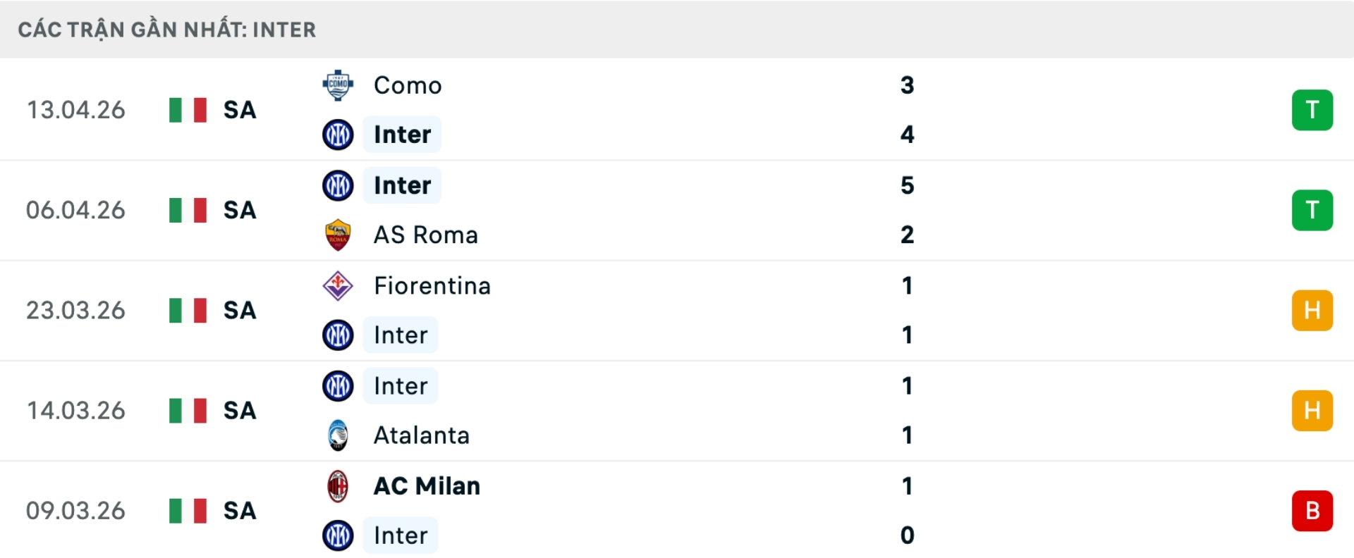 Phong độ Inter gần đây