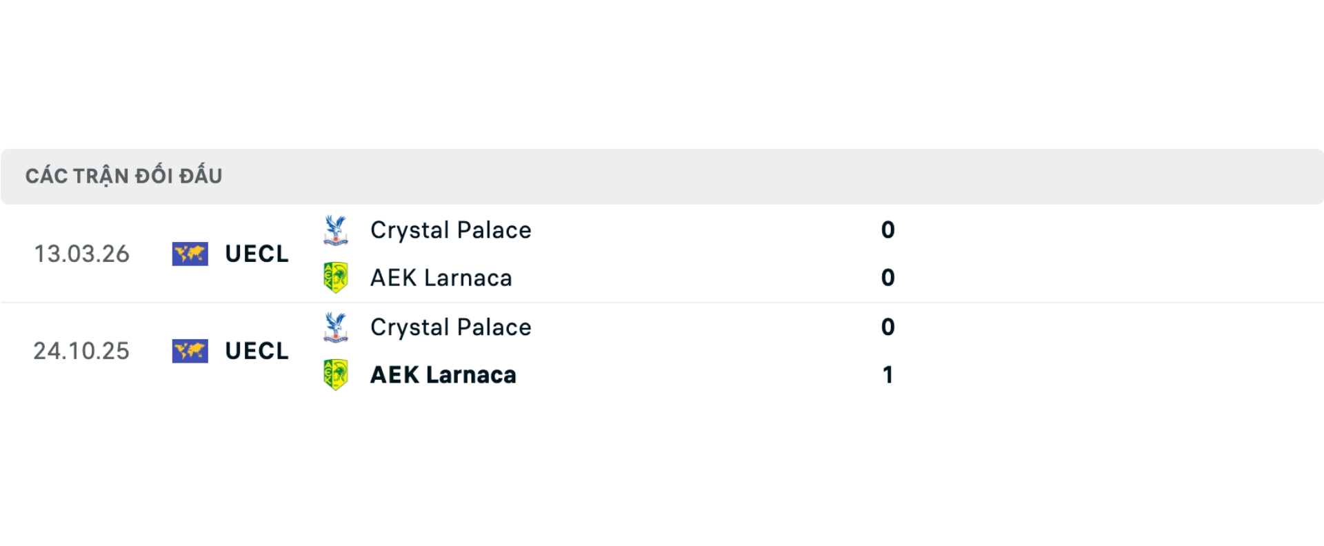 Cả hai đội đều cho thấy xu hướng thi đấu chặt chẽ. Crystal Palace gặp khó trong việc ghi bàn, còn AEK Larnaca lại sở hữu hàng thủ rất chắc chắn. Với tính chất của một trận knock-out, khả năng cao trận đấu sẽ khan hiếm bàn thắng.