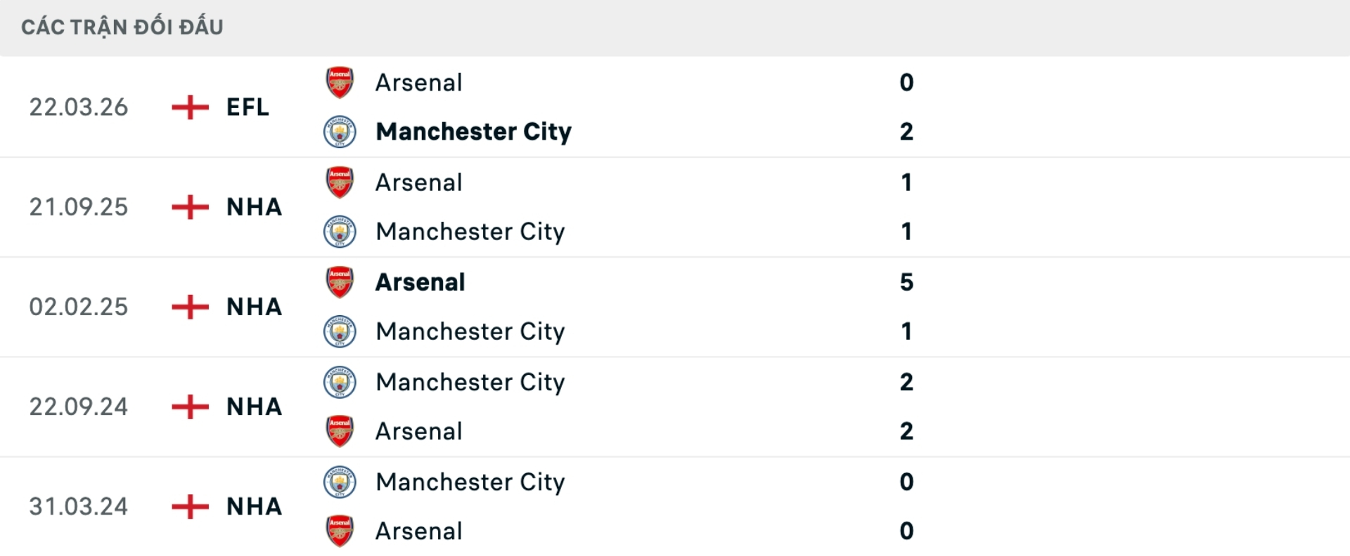 Sự vắng mặt của Martin Odegaard và Bukayo Saka ảnh hưởng rõ rệt đến khả năng triển khai bóng cũng như tạo đột biến của Arsenal. Dù Pháo thủ vẫn đang duy trì chuỗi 5 trận bất bại trước Man City tại giải quốc nội, nhưng với tình hình lực lượng và phong độ hiện tại, họ khó tái lập kết quả tích cực. Trước sức ép lớn từ đội chủ nhà, khả năng Arsenal trắng tay là rất dễ xảy ra.