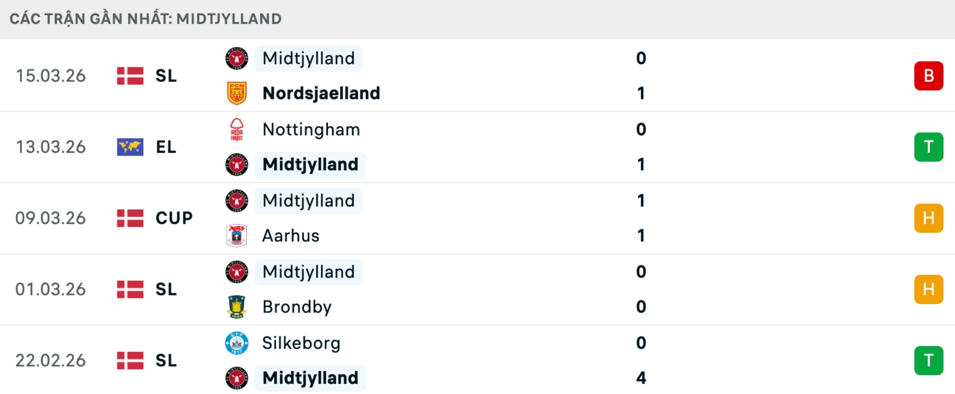 Phong độ Midtjylland gần đây