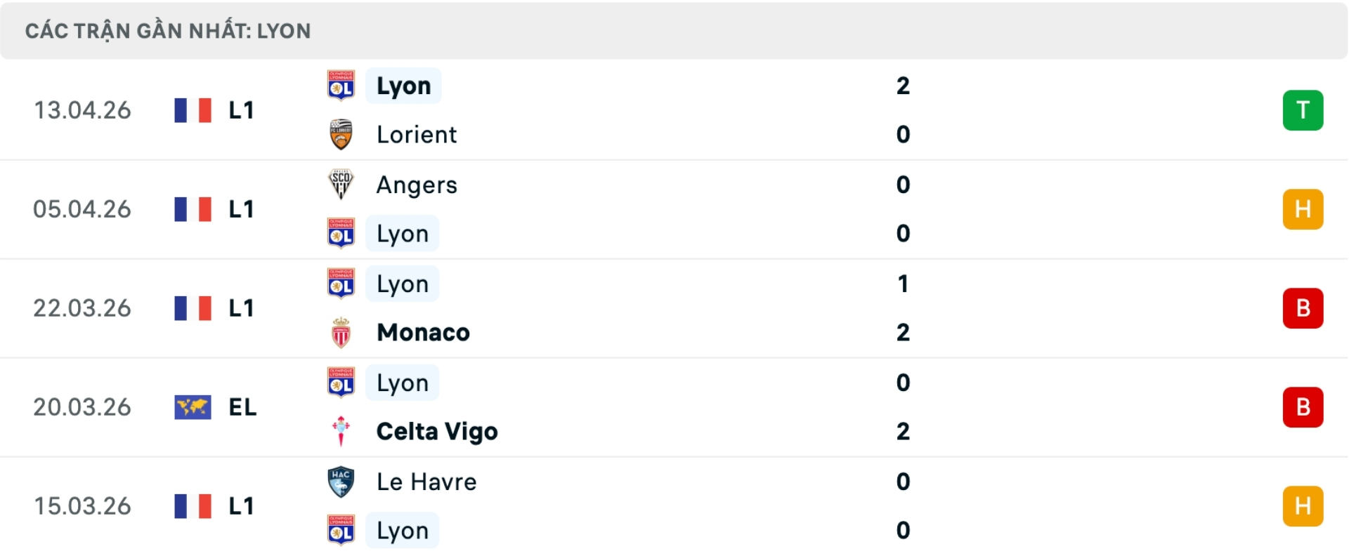 Phong độ Lyon gần đây