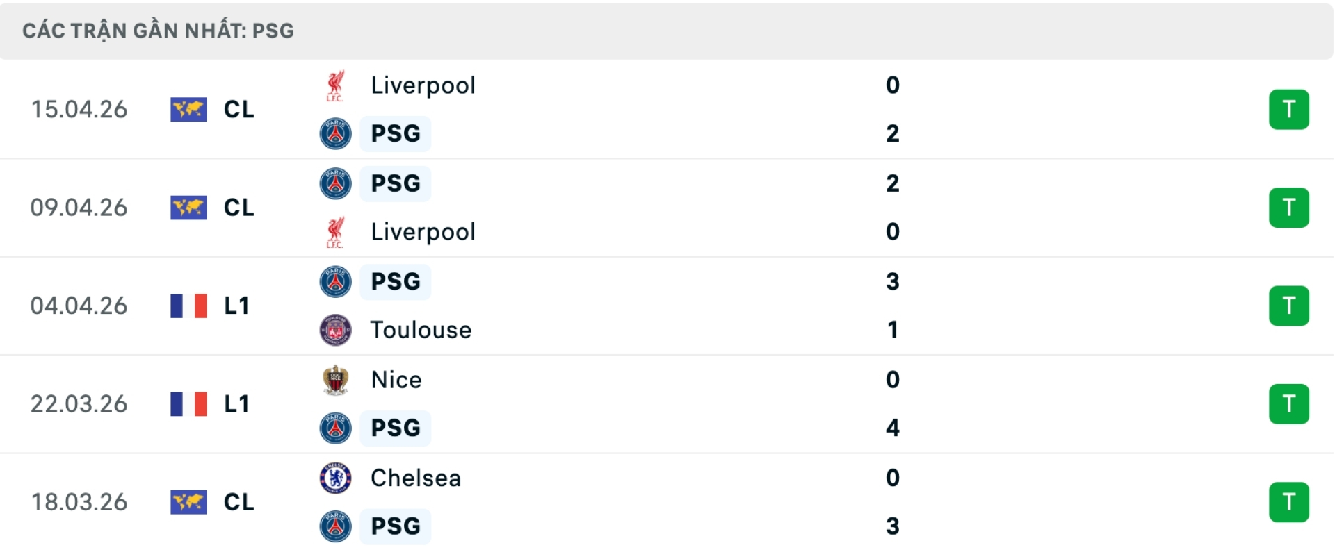 Phong độ PSG gần đây