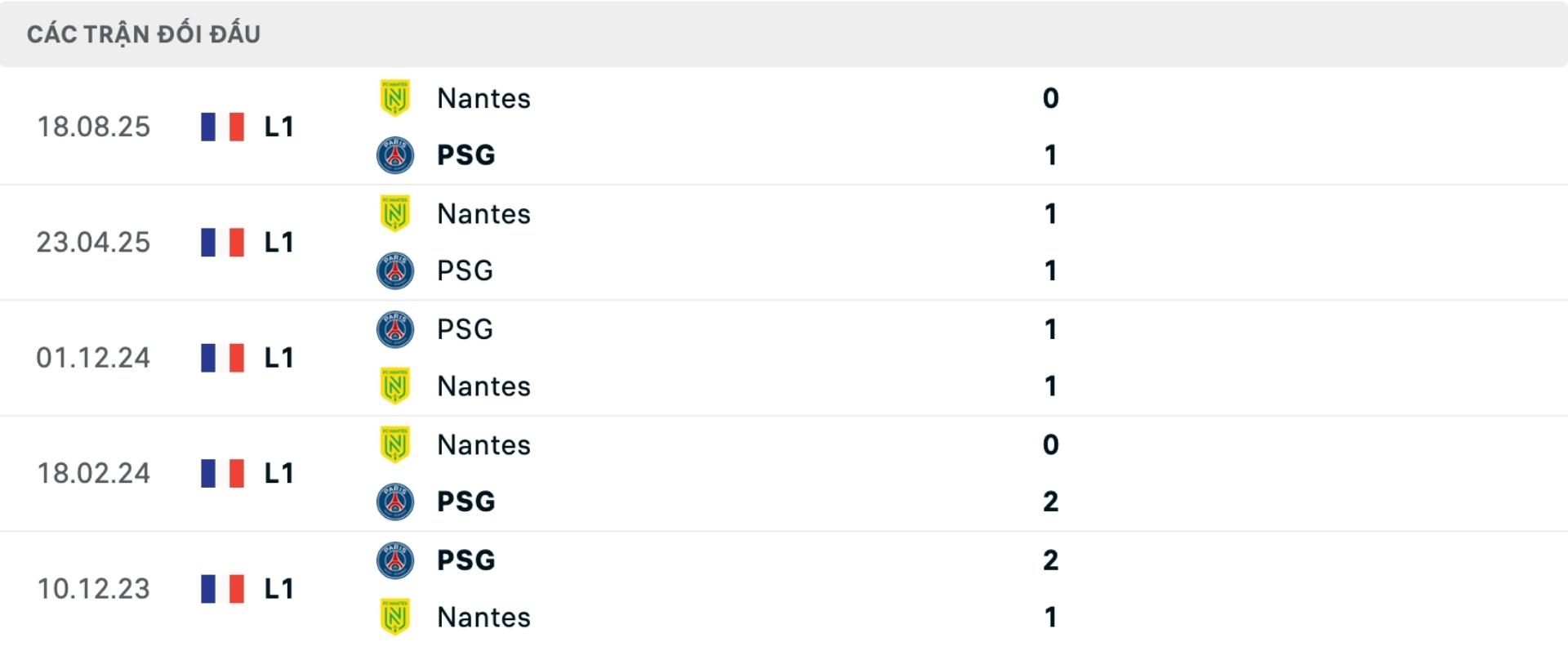 Xét về đối đầu, PSG cũng hoàn toàn lấn lướt. Trong 5 lần chạm trán gần nhất, đội bóng thủ đô bất bại trước Nantes, trong đó có 3 chiến thắng. Ở lần gặp nhau hồi đầu mùa, PSG cũng đã giành trọn 3 điểm. Khi đặt lên bàn cân từ phong độ, chất lượng đội hình cho tới lợi thế sân bãi, đội chủ nhà rõ ràng chiếm ưu thế lớn hơn rất nhiều.