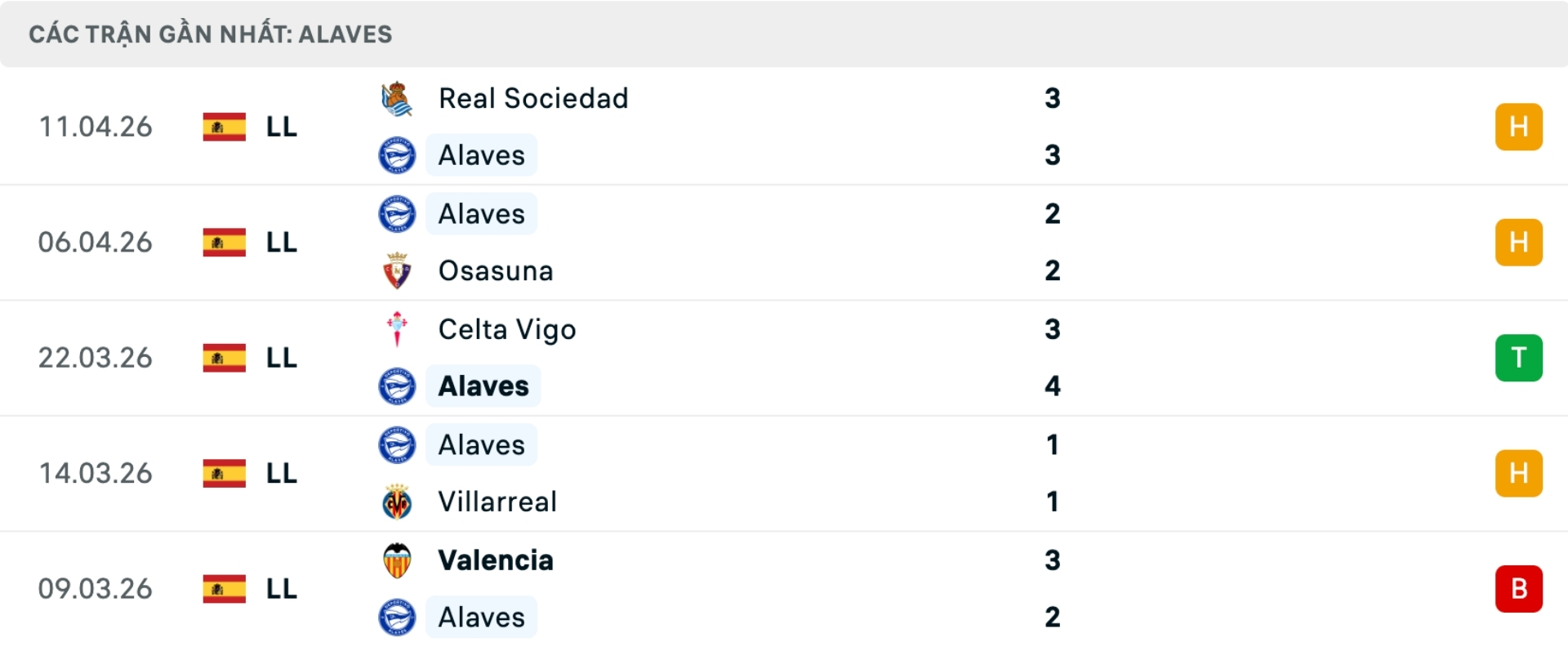 Ở phía bên kia, Alaves đang phải căng mình cho cuộc chiến trụ hạng. Vị trí thứ 17 khiến đội khách chưa thể yên tâm, khi khoảng cách với nhóm xuống hạng là rất mong manh. Dù vậy, đội bóng này lại cho thấy sự cải thiện đáng kể trong thời gian gần đây với 1 chiến thắng và 3 trận hòa ở 4 lần ra sân gần nhất.