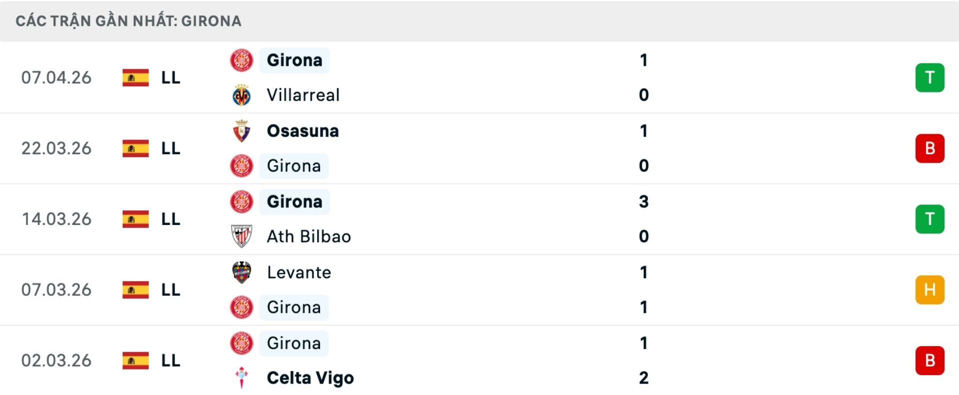 Ở chiều ngược lại, Girona đang dần cải thiện phong độ với 6 điểm trong 3 vòng gần nhất, nhưng 6 chuyến làm khách vừa qua họ không thắng nổi trận nào. Hàng thủ Girona khó lòng đứng vững trước sức ép tấn công từ Real Madrid, và khả năng họ chịu thất bại nặng nề là rất cao.