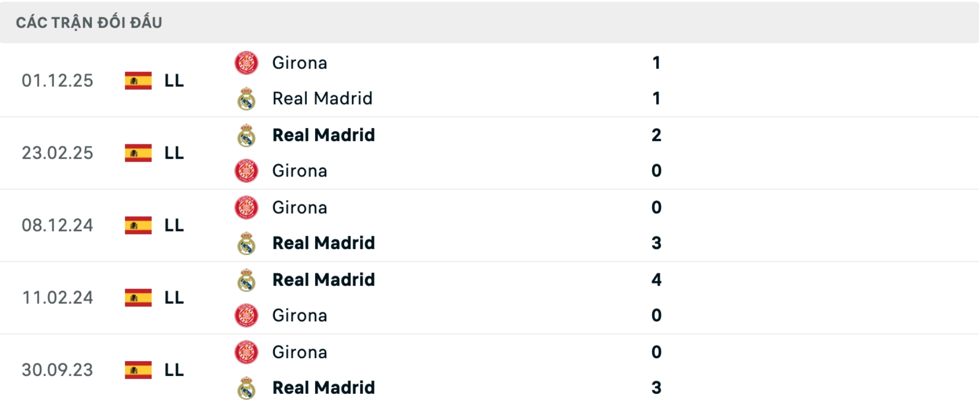 Lịch sử đối đầu cũng hoàn toàn ủng hộ Real Madrid, khi đội chủ nhà thắng 3/4 trận gần nhất gặp Girona. Với phong độ vượt trội, lợi thế sân nhà cùng lực lượng mạnh, chiến thắng gần như nằm chắc trong tay Real Madrid.