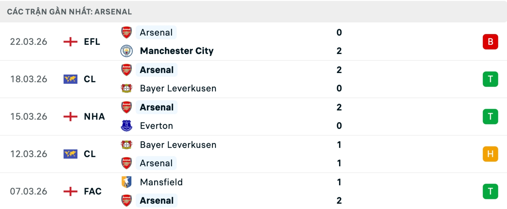 Phong độ Arsenal gần đây