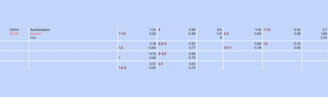 Tỷ lệ Arsenal chấp 1 1/2 trái là mức kèo không hề dễ chịu dành cho đội khách. Dù được đánh giá cao hơn về thực lực, nhưng Arsenal lại không có phong độ kèo thực sự thuyết phục khi để thua kèo 3 trong 5 trận gần nhất. Trong khi đó, Southampton đang là điểm đến rất sáng cho giới đầu tư khi thắng kèo liên tiếp 3 trận vừa qua và chỉ thua 1 trong 4 lần đối đầu gần nhất trước Arsenal. Với phong độ hiện tại của đội chủ nhà, khả năng Arsenal thắng cách biệt là không quá cao. Southampton đủ sức gây ra nhiều khó khăn và hoàn toàn có thể giữ trận đấu trong thế giằng co.