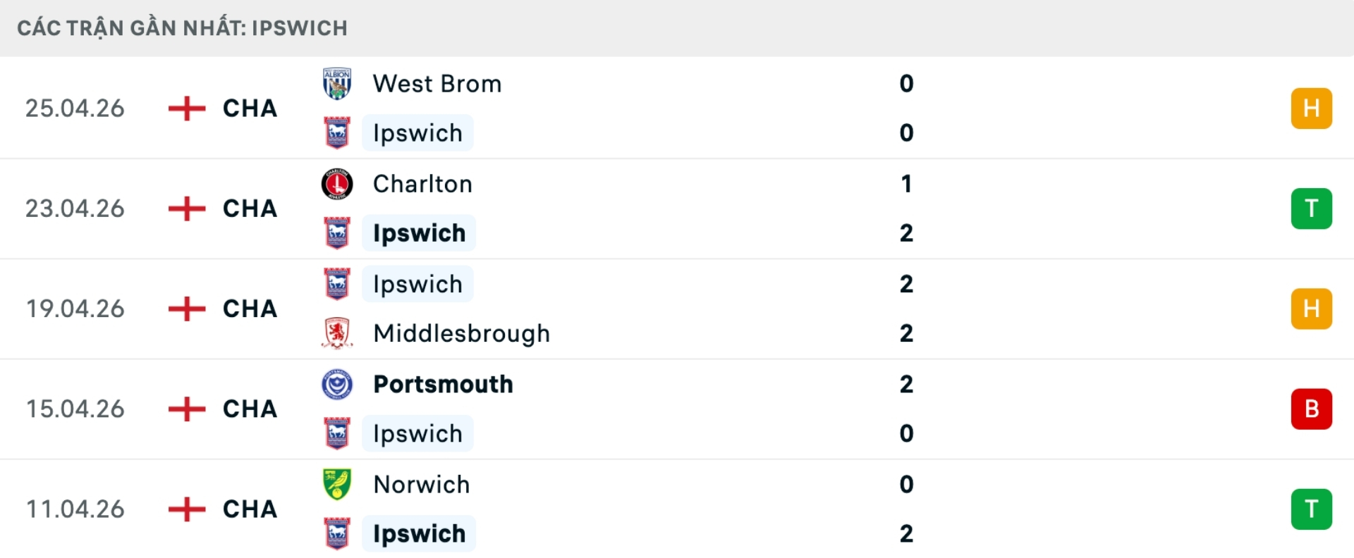 Phía đối diện, Ipswich đang chịu áp lực lớn trong cuộc đua lên hạng. Trận hòa trước West Brom khiến họ chưa thể bứt lên trong nhóm đầu, dù vẫn nắm trong tay lợi thế nhất định khi còn một trận chưa đá. Hiện tại, Ipswich có 80 điểm, bằng điểm với Millwall và chỉ hơn Middlesbrough đúng 1 điểm. Điều đó đồng nghĩa mỗi vòng đấu lúc này đều mang ý nghĩa sống còn.
