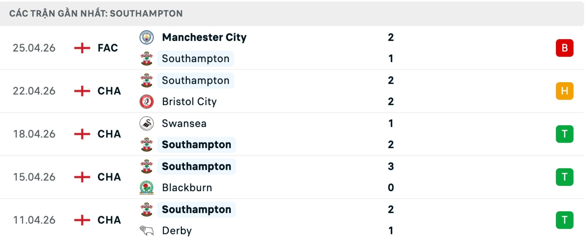 Southampton vừa trải qua quãng thời gian không thật sự suôn sẻ. Ở FA Cup, họ dừng bước sau thất bại trước Man City tại bán kết. Trở lại đấu trường hạng nhất Anh, The Saints tiếp tục gây thất vọng khi bị Bristol cầm hòa 2-2 ngay trên sân nhà. Dù vậy, đội bóng này vẫn giữ được vị trí thứ 5 trên bảng xếp hạng, tạo lợi thế lớn trong cuộc đua giành suất play-off.