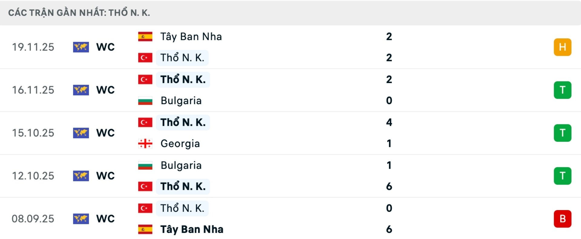 Phong độ Thổ Nhĩ Kỳ gần đây
